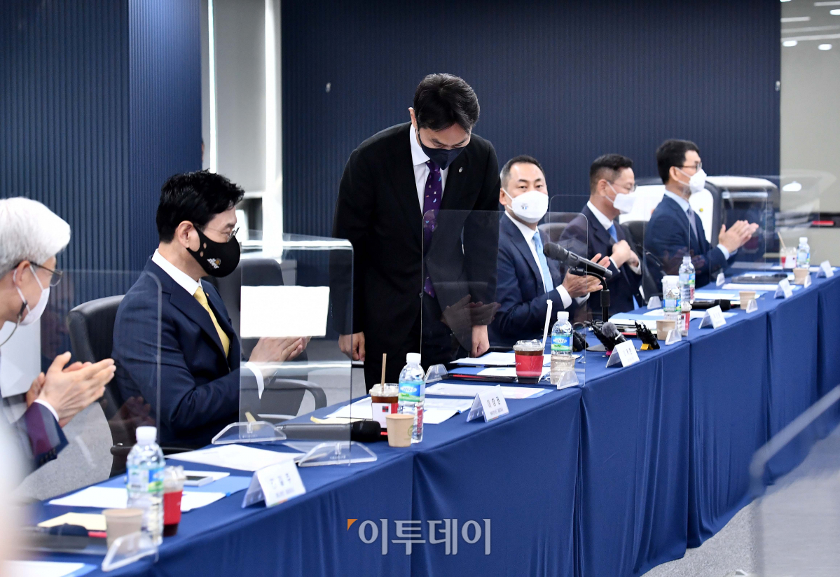 이복현 금융감독원장이 5일 서울 중구 여신금융협회에서 열린 여신전문금융회사 최고경영자(CEO)들과의 간담회에서 인사하고 있다.