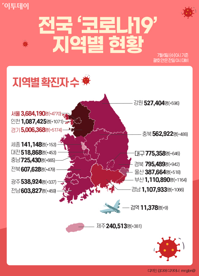 신규 확진자 1만9371명 중 4770명은 서울에서 발생했으며, 부산 1164명, 대구 646명, 인천 1071명, 광주 337명, 대전 453명, 울산 518명, 세종 153명, 경기 5174명, 강원 596명, 충북 488명, 충남 665명, 전북 479명, 전남 459명, 경북 942명, 경남 1066명, 제주에서 381명이 각각 확진됐다. 확진자 1만9371명 중 지역발생 확진자는 1만9147명으로 집계됐다. 검역소 확진자도 9명이 추가됐다.
