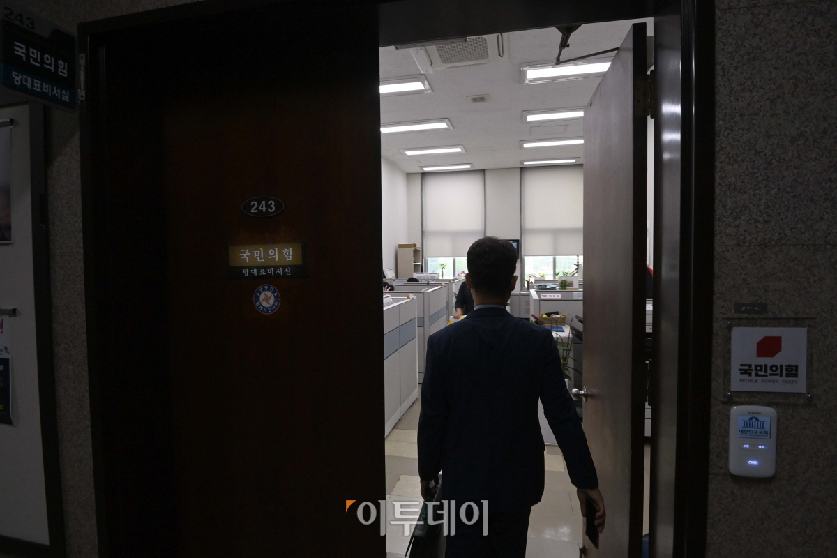 국민의힘 중앙윤리위원회의 이준석 대표 '성상납 증거인멸 교사' 의혹 관련 심의를 앞둔 7일 오전 국회 당 대표실 관계자들이 분주히 움직이고 있다.