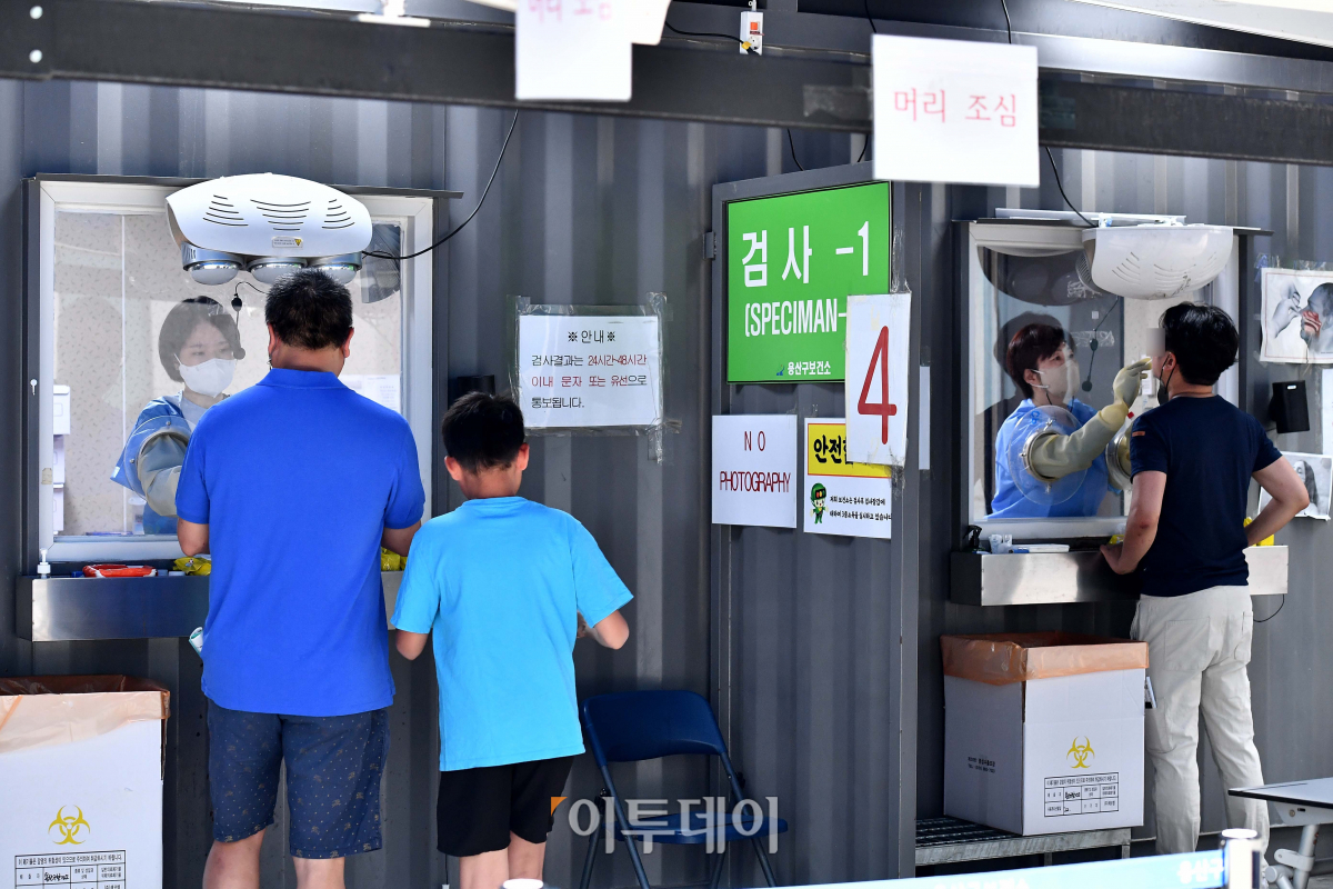 코로나19 신규확진자가 이틀 연속 2만명대를 보인 10일 서울 용산구보건소 선별진료소에서 시민들이 코로나19 진단검사를 받고 있다. 이날 0시 기준 코로나 신규 확진자는 2만410명으로 지난 9일 한달 반 만에 2만명대를 기록한 데 이어, 통상 검사량이 줄어드는 주말에도 다시 한번 2만명대를 나타내면서 재확산하는 경향을 보이고 있다.