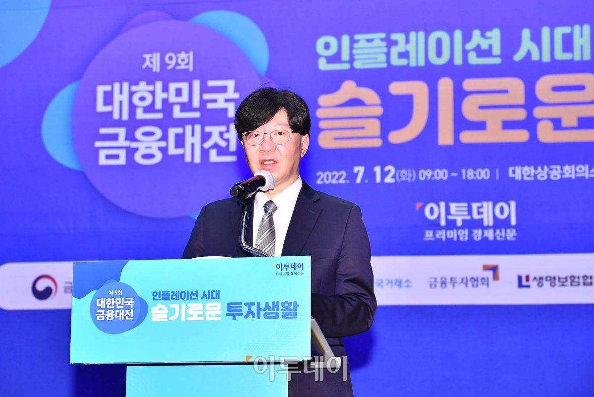 김소영 금융위원회 부위원장이 12일 서울 중구 대한상공회의소 국제회의장에서 열린 ‘제9회 대한민국 금융대전’에서 축사를 하고 있다. 이투데이가 ‘인플레이션 시대 슬기로운 투자생활’을 주제로 개최한 이날 재테크 세미나에선 빚투, 영끌로 시작해 ‘코인존버’, ‘하우스푸어’로 이어지는 MZ세대 투자자뿐 아니라 자신만의 투자 철학을 세우려는 이들을 위한 전문가의 강연이 이어졌다.