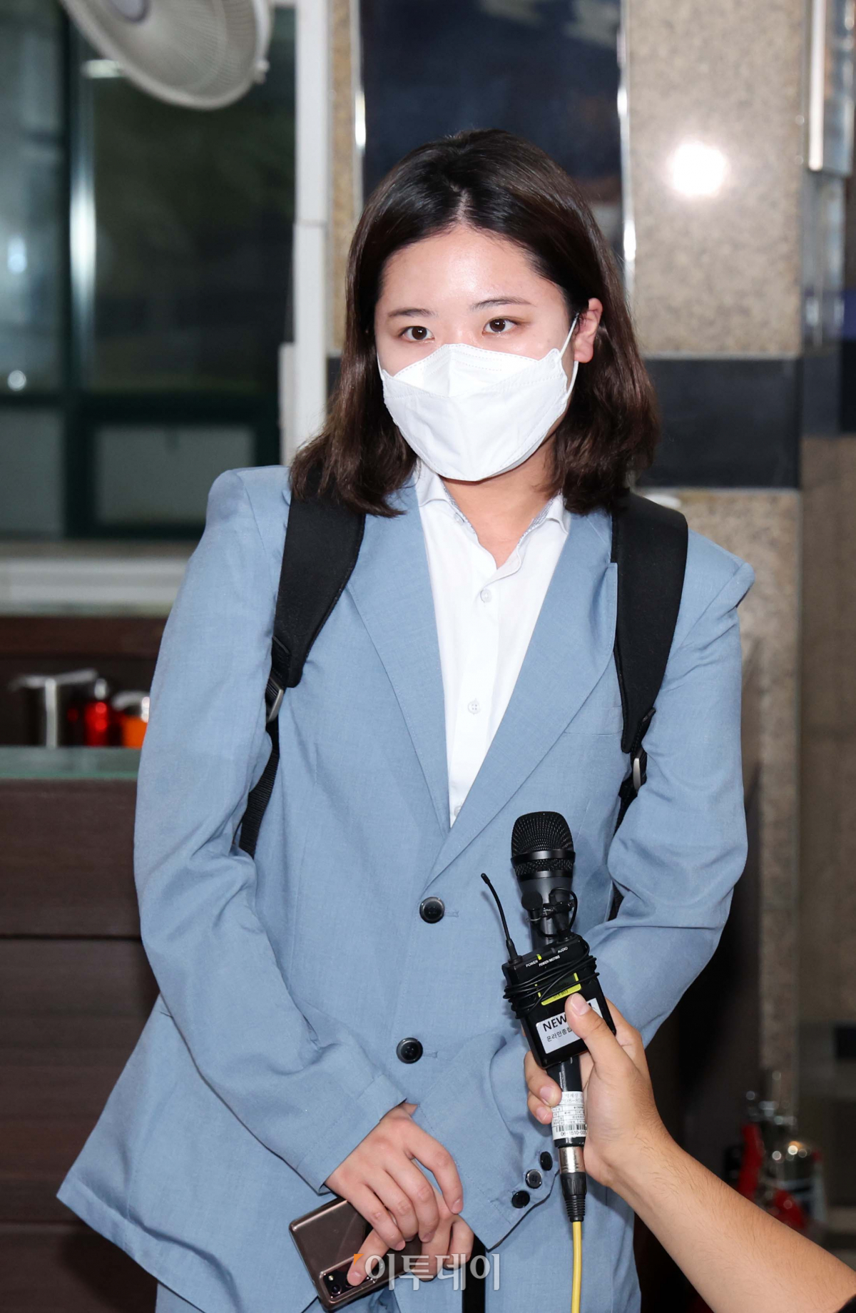 박지현 전 더불어민주당 비상대책위원장이 13일 서울 여의도 한 식당에서 우상호 비상대책위원장과 점심 회동 후 기자들의 질문에 답하고 있다.