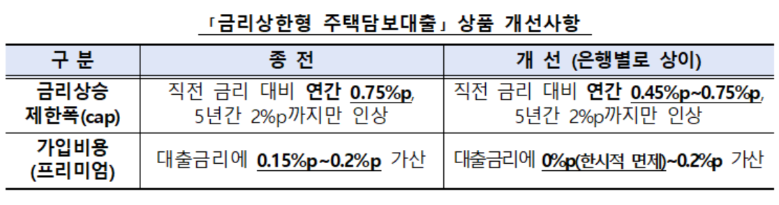 금리상한형 주택담보대출, 금리상승 제한폭 하향하고 가입비용 인하