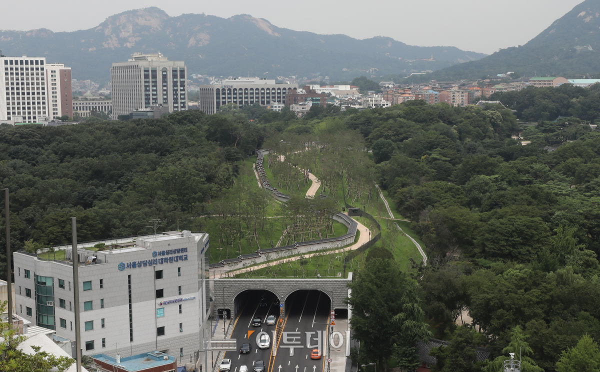 20일 서울 종로구 창경궁과 종묘 연결 역사복원사업이 공개됐다. 서울시는 창경궁과 종묘를 단절시켰던 율곡로를 지하화하고 그 위에 축구장보다 넓은 녹지(약 8000㎡)를 만들어 끊어졌던 녹지축을 잇고 일제가 없애버린 창경궁과 종묘 사이 궁궐담장(503m)과 북신문(北神門)도 최대한 원형 그대로 복원했다고 밝혔다.