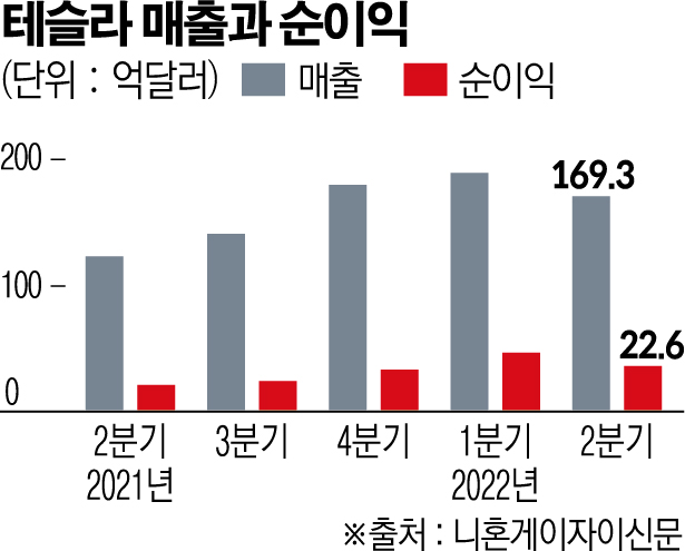 20일(현지시간) CNBC 등에 따르면 테슬라는 이날 장 마감 후 2분기 매출이 169억3000만 달러(약 22조 원)를 기록했다고 밝혔다. 이는 전 분기 대비 9.8% 줄어든 것으로 시장조사업체 레피니티브가 집계한 전문가 전망치 171억 달러를 밑도는 것이다.