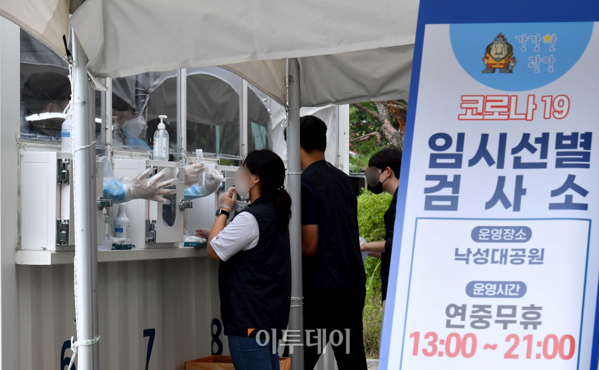 코로나19 재유행으로 서울 각 자치구의 임시선별검사소가 다시 문을 열었다. 22일 서울 관악구 낙성대공원 임시선별검사소에서 시민들이 코로나19 진단검사를 받고 있다. 이날부터 순차적으로 개소하는 각 임시선별검사소에선 연중무휴로 오후 1시부터 9시까지 PCR 검사를 받을 수 있다. 단 신속항원검사에서 양성 반응을 보이거나 만 60세 이상의 고령자, 역학적 연관성이 있는 사람 등 우선순위에 해당하는 대상자만 검사 가능하다.