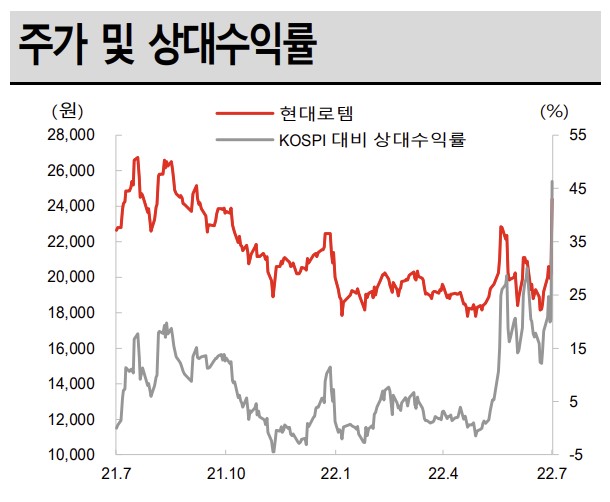 나승두 SK증권 연구원은 "현대로템은 2분기 매출액 7858억 원(YoY+10.6%), 영업이익 314억 원(YoY +99.4%) 의 잠정실적을 공시했다"라며 "디펜스솔루션과 에코플랜트 부문은 대규모 프로젝트들이 종료된 2021년 이후 잠시 숨을 고르는 상태지만, 레일솔루션 부문은 기존 수주 프로젝트들의 증액 효과 등에 힘입어 꾸준한 성장세를 이어가고 있다"고 밝혔다.