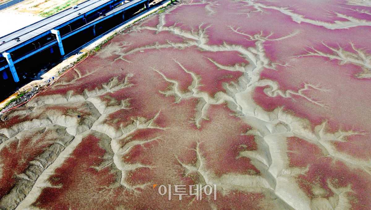 28일 인천 중구 운염도 갯벌에 붉게 물든 칠면초가 군락을 이루고 있다. 칠면조처럼 색이 변한다 해서 이름 붙여진 칠면초는 봄에는 초록빛을 띠다가 여름과 가을이 되면서 몸 전체가 점차 붉은색을 띠어 갯벌을 물들인다.