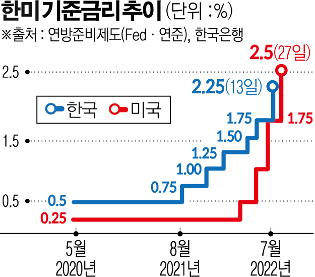 연준의 연이은 자이언트 스텝으로 한국(2.25%)과 미국의 기준금리는 2년 반 만에 역전됐다. 이에 외국인 자금이 한국 금융시장에서 빠져나갈 것이라는 우려도 커지고 있다.