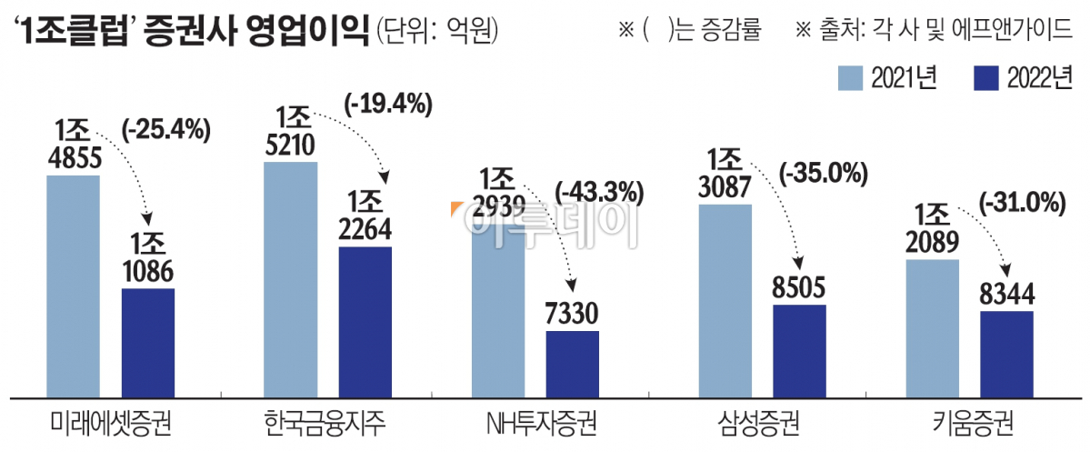 ‘1조 클럽’ 증권사 5곳, 올해 영업이익 30% 급감