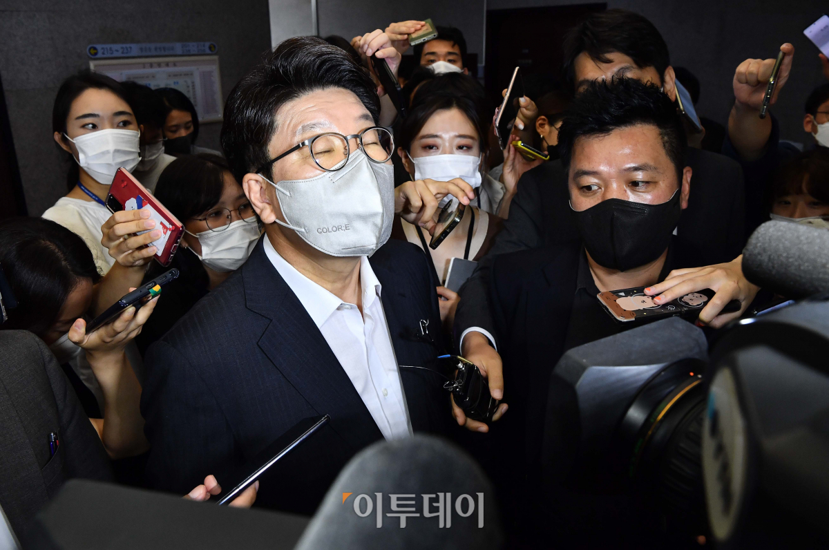 권성동 국민의힘 원내대표가 2일 서울 여의도 국회 국민의힘 원내대표실에서 열린 비공개 최고위원회의에서 비상대책위원회 체제 전환을 위한 상임전국위원회 및 전국위원회 소집 안건 의결을 마친 뒤 원내대표실을 나서고 있다.