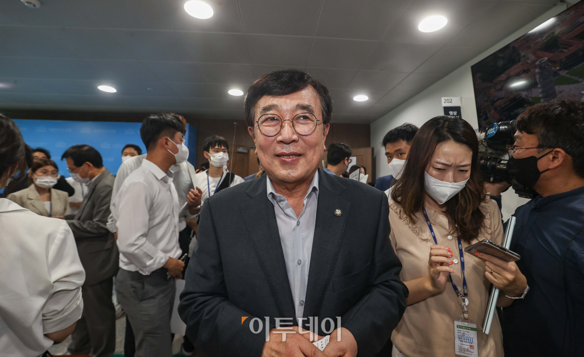 서병수 국민의힘 전국위원회 의장이 3일 서울 여의도 국회 소통관에서 전국위원회, 비상대책위원회 구성 등과 관련해 취재진의 질문에 답변을 마친 뒤 나서고 있다.