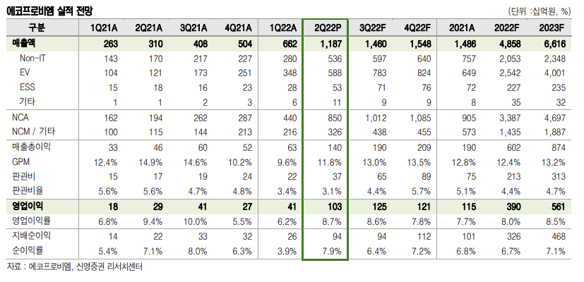에코프로비엠, 2분기 매출 1조 원 달성…해외 공장 증설로 캐파 확대 전망- 신영증권