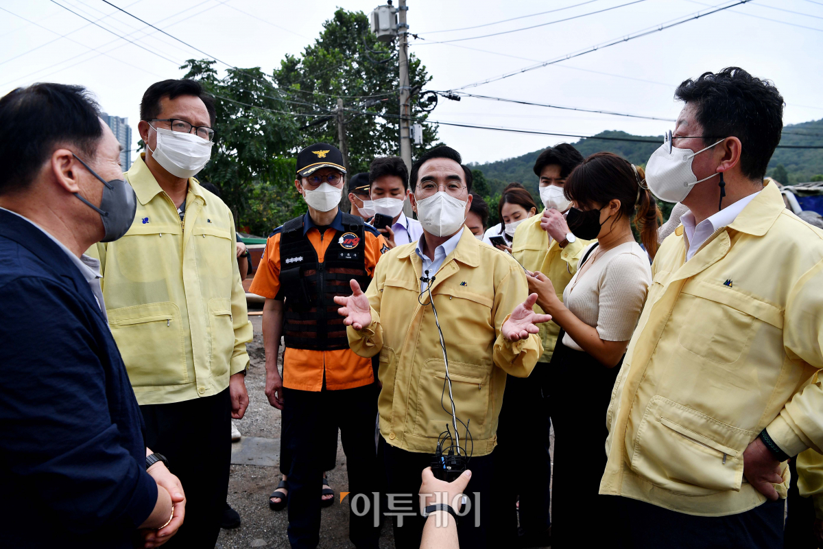 [포토] 구룡마을 수해현장 살펴본 뒤 발언하는 박홍근