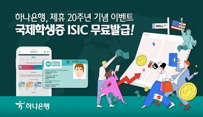 하나은행은 국제학생증 제휴카드 발급 20주년을 기념해 키세스(KISESㆍ국제학생증 한국대표부)와 함께 ‘국제학생증 ISIC 무료 발급 이벤트’ 를 이달 말까지 실시한다고 12일 밝혔다.