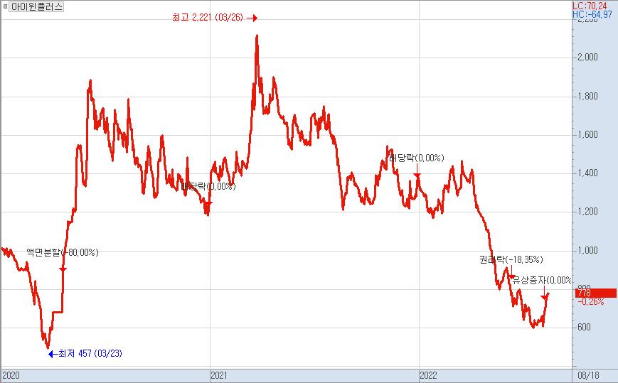 아이윈플러스는 주식분할 이전 하루 거래량이 10만 주를 넘기는 일이 드물었으나 병합된 신주 상장 이후로는 거래량이 기존보다 10배 이상으로 급증했다. 아울러 7~8월 주가가 2000원대로 오르는 등 나름의 주가 상승효과도 얻었다.