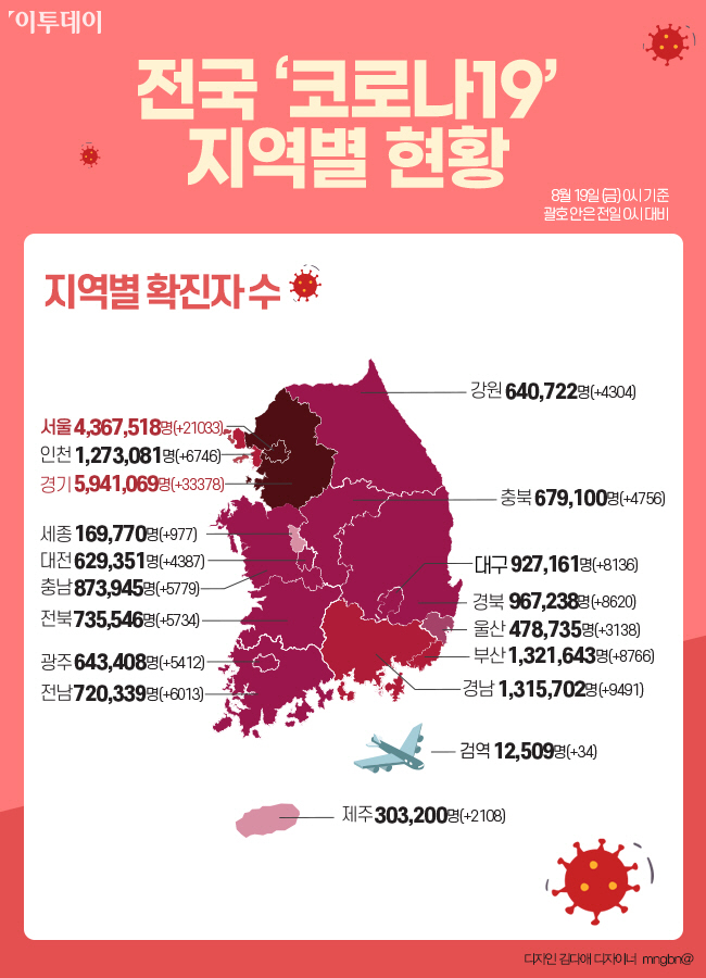 질병관리청 중앙방역대책본부에 따르면 19일 0시 기준 코로나19 확진자는 전날 0시 발표 때보다 13만8812명 늘었다.