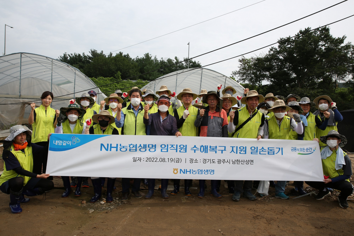 NH농협생명은 김인태 대표이사 및 임직원 30여 명이 지난 19일 집중호우로 피해를 당한 농가 복구를 위해 일손돕기에 나섰다고 21일 밝혔다.