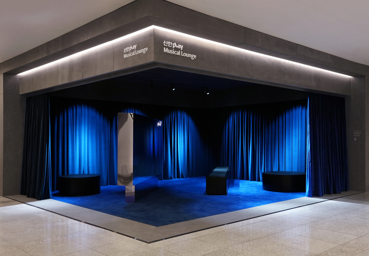 신한플레이 뮤지컬 라운지는 공연 전 관람객들이 대기하던 40㎡ 남짓의 휴게 공간을 본 공연 전에 연주되는 도입곡인 ‘서곡’이라는 콘셉트 아래 색다른 예술적 경험의 장소로 지난 5월 오픈한 공간 디자인 프로젝트다.