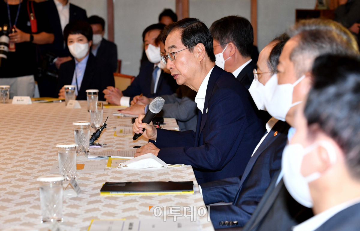 한덕수 국무총리가 28일 서울 삼청동 총리공관에서 열린 고위 당정 협의회에서 인사말을 하고 있다.