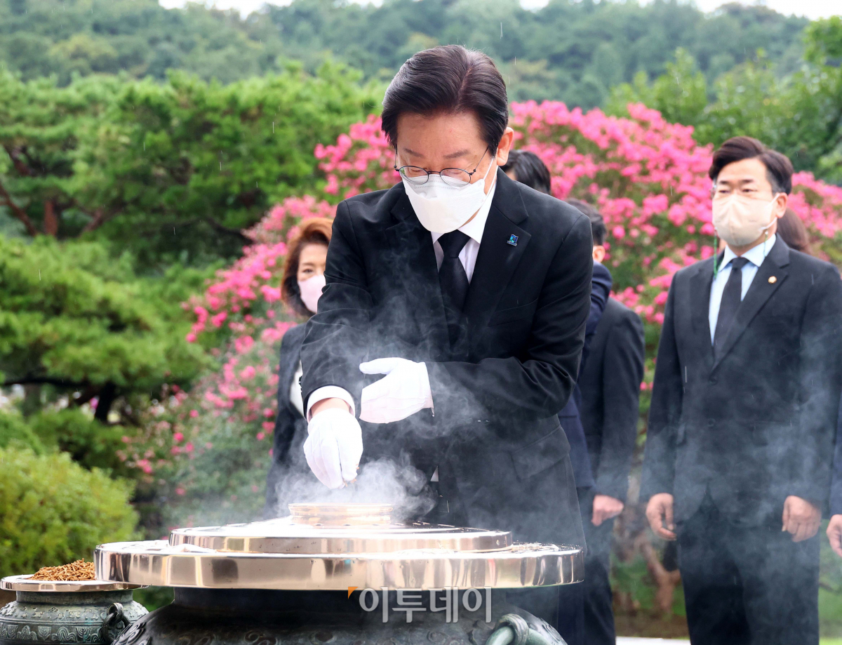 이재명 더불어민주당 신임 당대표가 29일 오전 서울 동작구 국립서울현충원을 찾아 참배하고 있다. 국회사진취재단