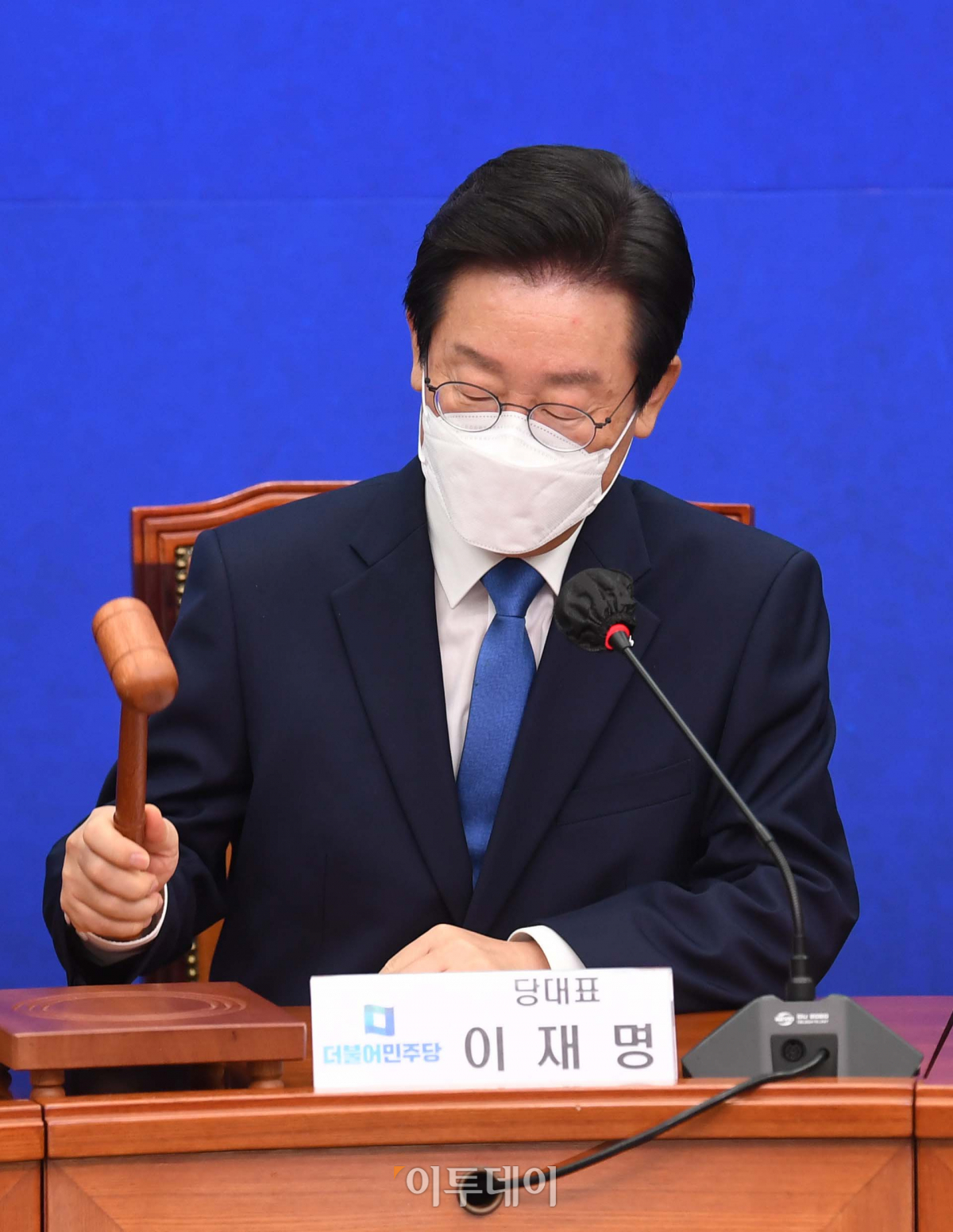 이재명 더불어민주당 대표가 29일 오전 서울 여의도 국회에서 열린 최고위원회의에 참석해 첫 회의를 주재하며 의사봉을 두드리고 있다.