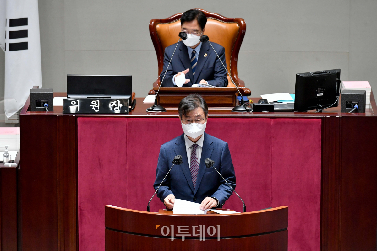 최재해 감사원장이 29일 서울 여의도 국회에서 열린 예산결산특별위원회 전체회의에서 발언하고 있다.