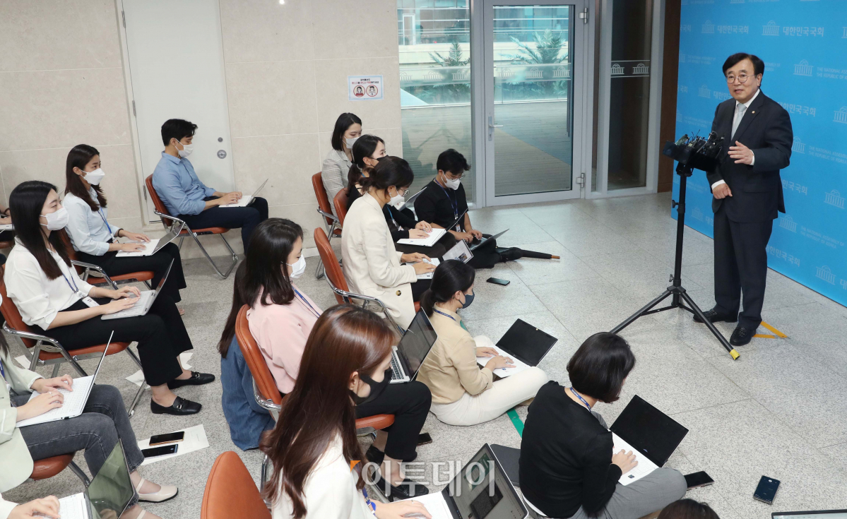서병수 국민의힘 전국위원회 의장이 29일 국회 소통관에서 기자회견을 열고 당의 '새 비상대책위원회' 출범을 위한 전국위 소집 요구에 대해 "응할 생각이 없다"며 부정적인 입장을 밝히고 있다.