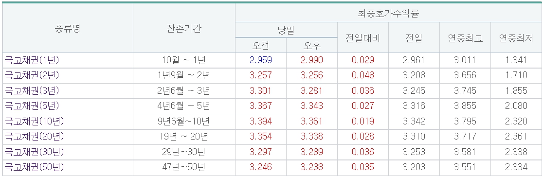 30년물과 50년물은 각각 0.087%포인트, 0.082%포인트 올라 연 3.589%, 3.530%다.