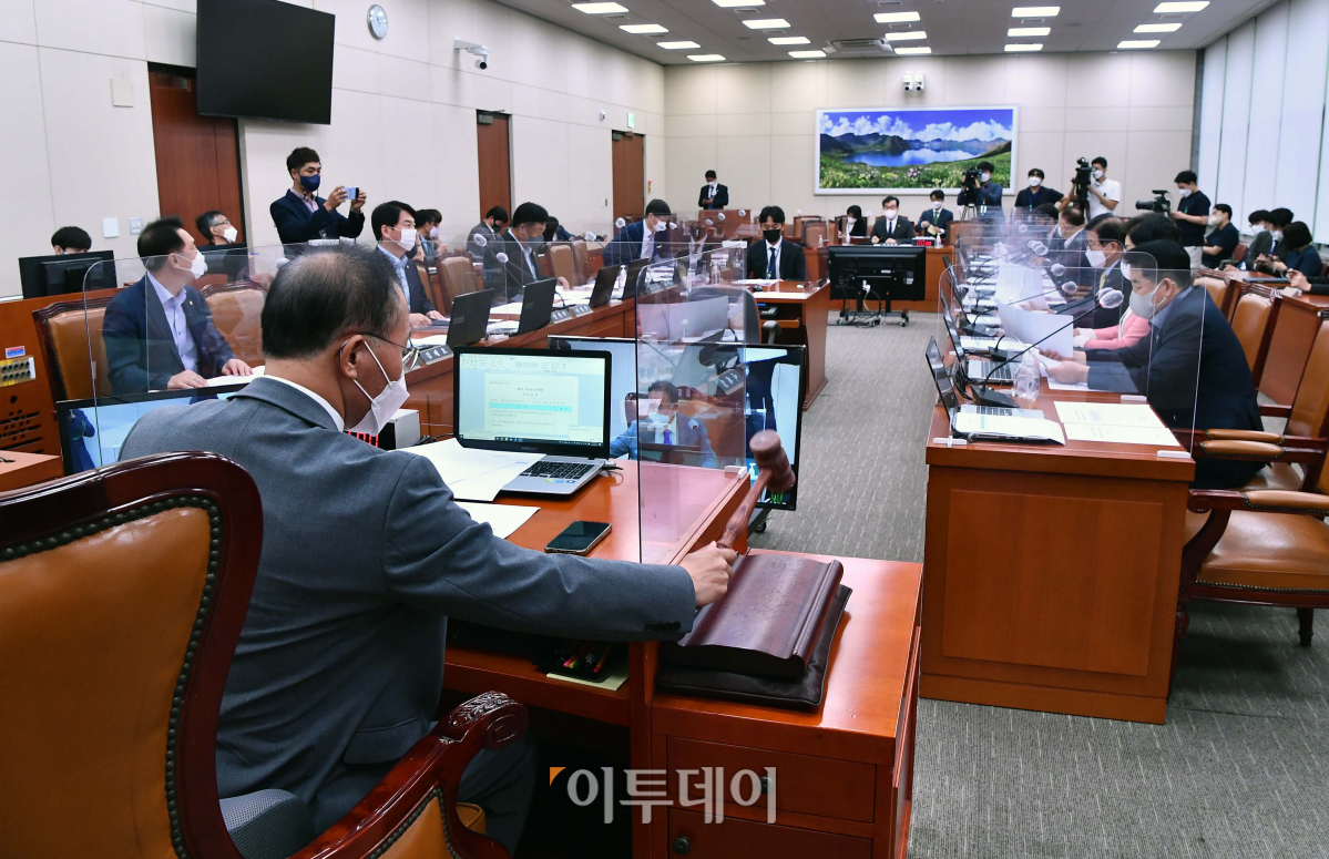 30일 서울 여의도 국회에서 열린 외교통일위원회 전체회의에서 윤재옥 위원장이 의사봉을 두드리고 있다.