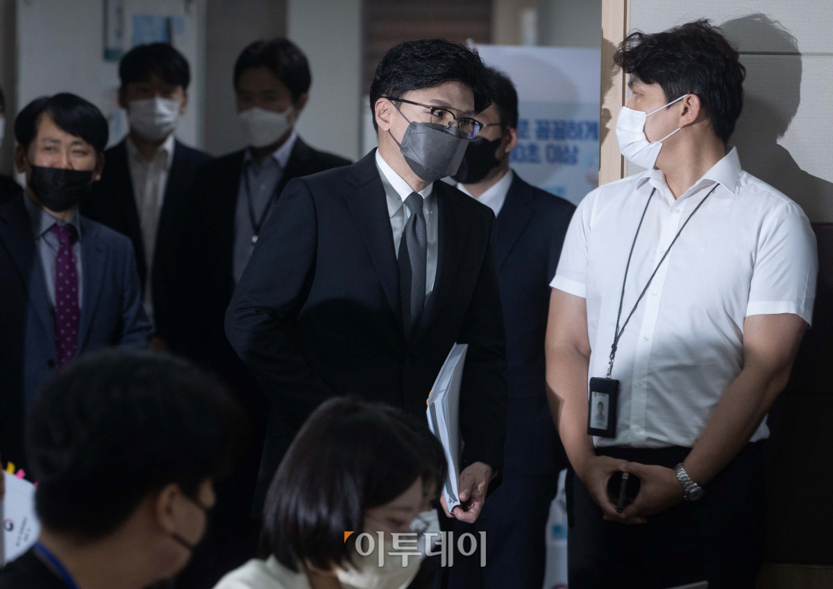 [포토] 론스타 사건 판정 선고 브리핑 참석하는 한동훈 법무부 장관