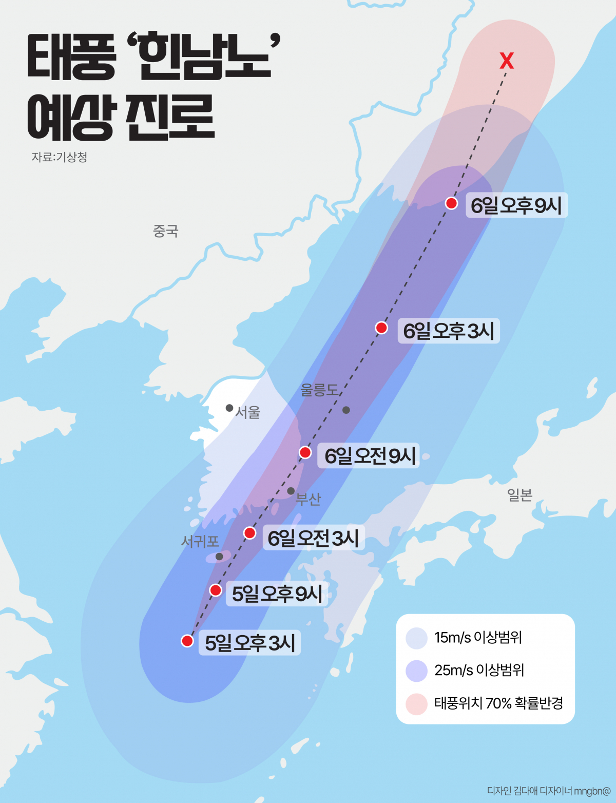 [인포그래픽] 이 시각 힌남노 예상 진로는?