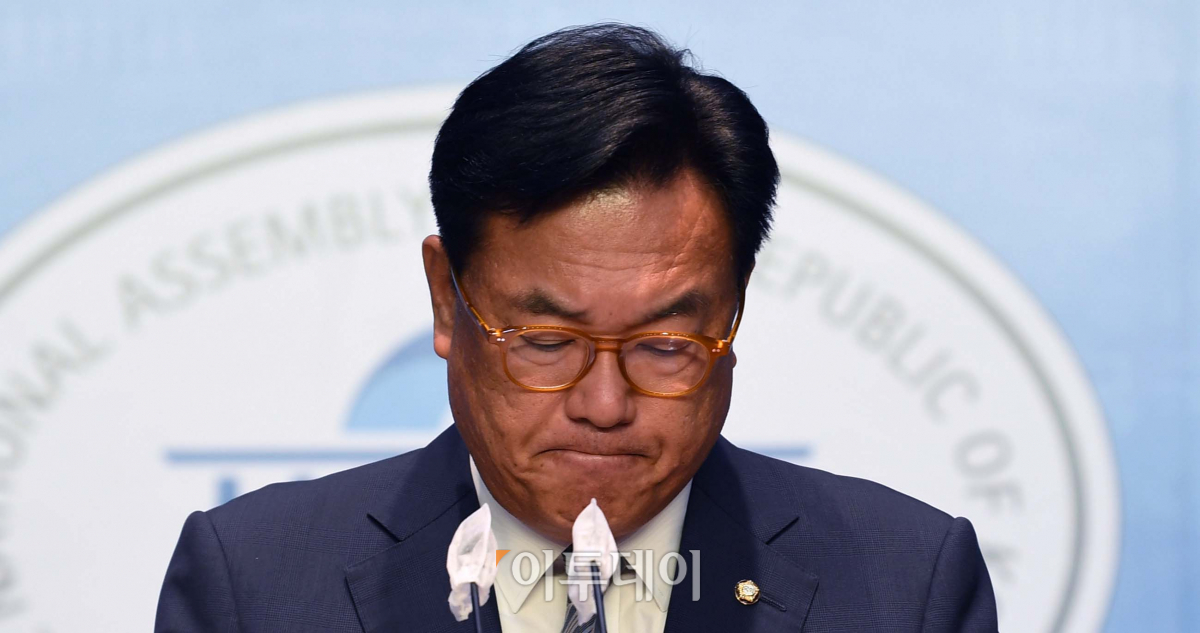 국민의힘 비상대책위원장직을 수락한 정진석 국회 부의장이 7일 오후 서울 여의도 국회 소통관에서 기자회견을 하고 있다. 정 부의장은 비대위원장을 맡기로 했다고 밝히며 "당을 하루속히 안정화시키겠다"고 말했다.