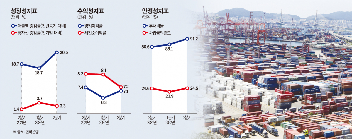 특히 안정성도 악화했는데, 이 기간 부채비율은 91.2%로 2016년 3분기 이후 6년 만에 가장 높았다. 3분기 역시 고금리·고환율·고물가 현상 속에 기업 수익성은 더 하락할 것으로 보인다.