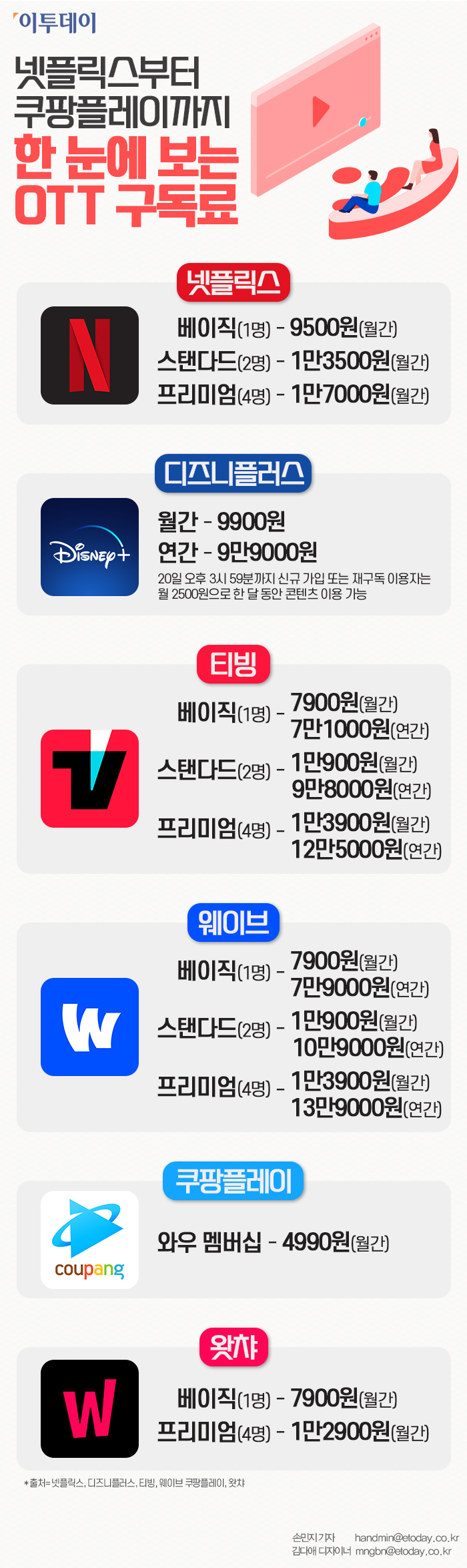 그런 분들을 위해 준비했습니다. 플랫폼별, 구독 기간별 OTT 구독료, 인포그래픽으로 확인해보세요.