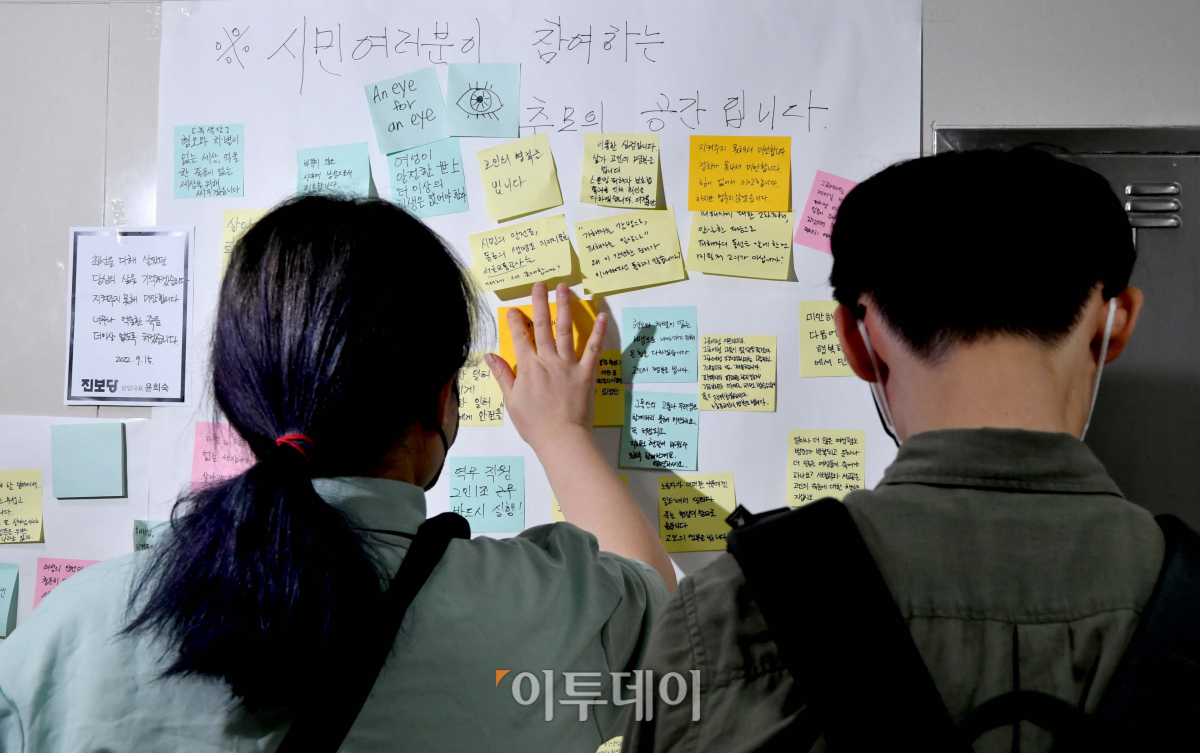 [포토] '신당역 살인사건' 추모공간 찾는 시민들