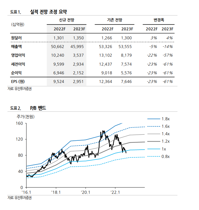 이 연구원은 “달러 기준 매출은 전 분기 대비 14% 감소가 예상되는데 그나마 경쟁사인 마이크론의 18% 매출 감소보다는 양호하다는 점이 위안 요인”이라며 “1년 전과 비교해 매출은 34% 증가했으나, 재고자산은 91%나 증가했다”고 분석했다.