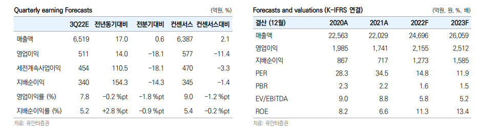 이어 “다만 경쟁사의 신제품 출시 및 수요 정상화 흐름 등에 따라 일시적으로 판촉 강도가 상승할 수 있는 변수도 존재한다”며 “동사는 2022년 일회성 비용(퇴직연금 계정 변경, 화물연대 파업 이슈 등)이 반영돼 상대적으로 이익 모멘텀이 돋보일 것으로 예상한다”고 덧붙였다.