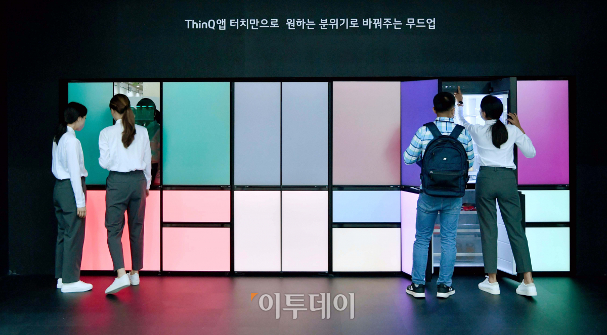 4일 서울 강남구 코엑스에서 열린 ‘한국전자전(KES 2022)’ LG 부스에 색깔이 바뀌는 디오스 오브제컬렉션 무드업 냉장고가 전시돼 있다. 오는 7일까지 열리는 한국전자전은 산업통상자원부가 주최하고 한국전자정보통신산업진흥회(KEA)가 주관하는 국내 최대 전자·정보기술(IT) 전시회로, 삼성전자와 LG전자를 비롯해 미국·일본·독일 등 8개국 450여 개 회사에서 1200개 부스로 참여한다.