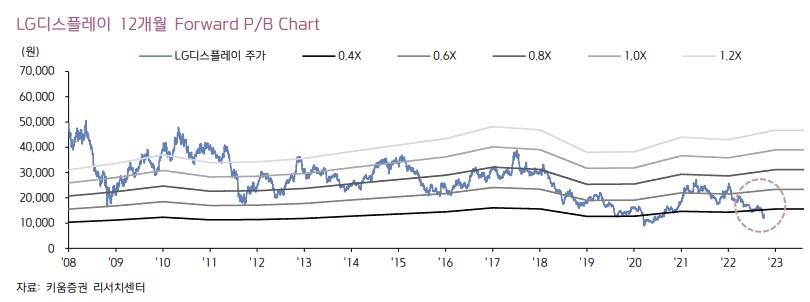 키움증권은 6일 LG디스플레이에 대해 현재 주가는 역사적 저점 수준으로 향후 LCD 업황 개선 기대감이 주가 하방을 지지해줄 것으로 판단된다며 투자의견을 '매수'로 상향하고, 목표주가 1만8000원을 유지했다.