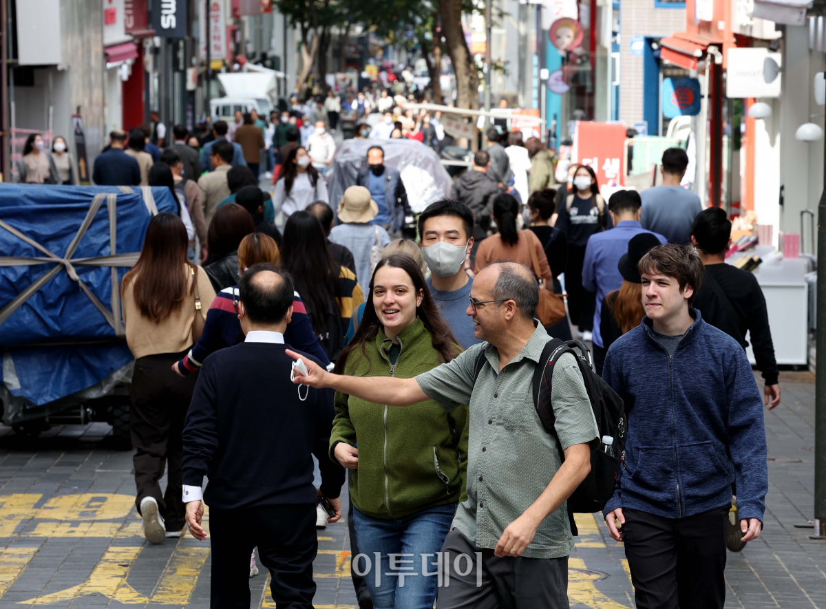 원·달러 환율 급락과 코로나19 방역조치 완화로 한국을 찾는 외국인이 급증하고 있다. 6일 한국관광데이터랩에 따르면 외국인 방문객은 코로나 팬데믹이 한창이던 2020년 8월 6만8797명에서 올해 8월 31만945명으로 약 4.5배 증가했다. 이날 서울 명동거리에서 외국인 관광객들이 발걸음을 옮기고 있다.