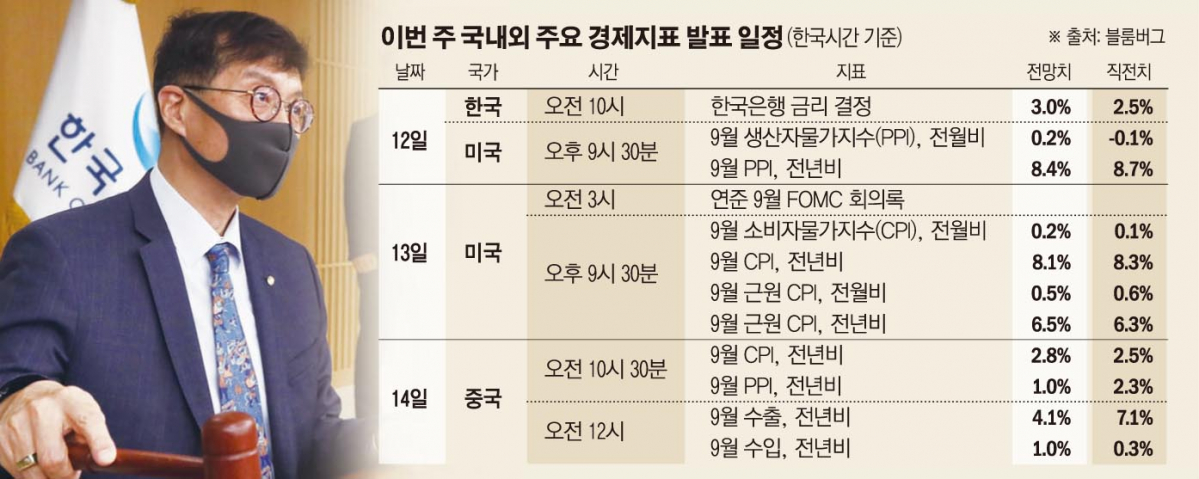 일각에서는 0.25%p 인상에 그칠 가능성도 제기하고 있으나, 한은의 기준금리 발표 이후 예정된 글로벌 이벤트를 고려했을 때 가능성은 낮다는 것이 대다수 시장 전문가들의 의견이다. 일단 가장 중요한 이슈는 한국시간으로 13일 밤 9시 30분에 발표될 9월 미국 소비자물가지수(CPI) 발표다.