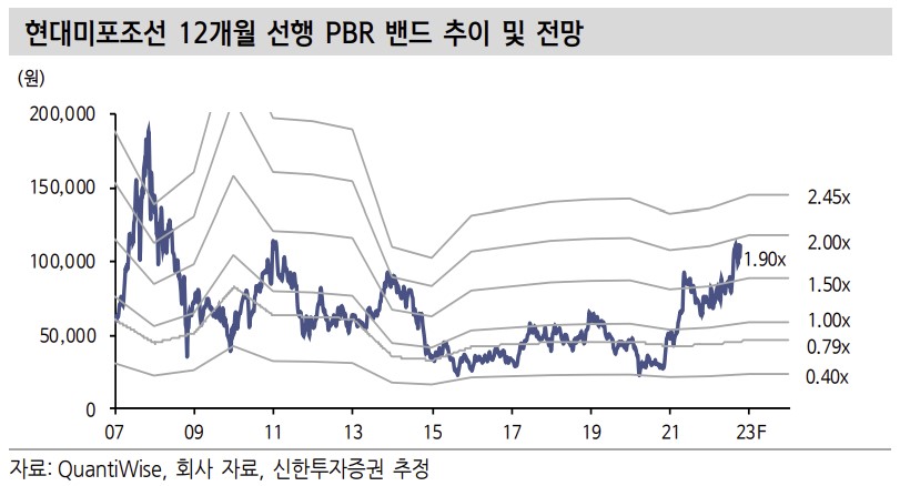 신한투자증권은 12일 현대미포조선에 대해 중소형 선박업계에서 독보적인 경쟁력을 확보했고 P/C선 수요 증가도 기대된다며 투자의견 '매수'와 목표주가 14만 원을 유지했다. 전 거래일 기준 현대미포조선의 현재 주가는 10만5500원, 상승여력은 32.7%다.