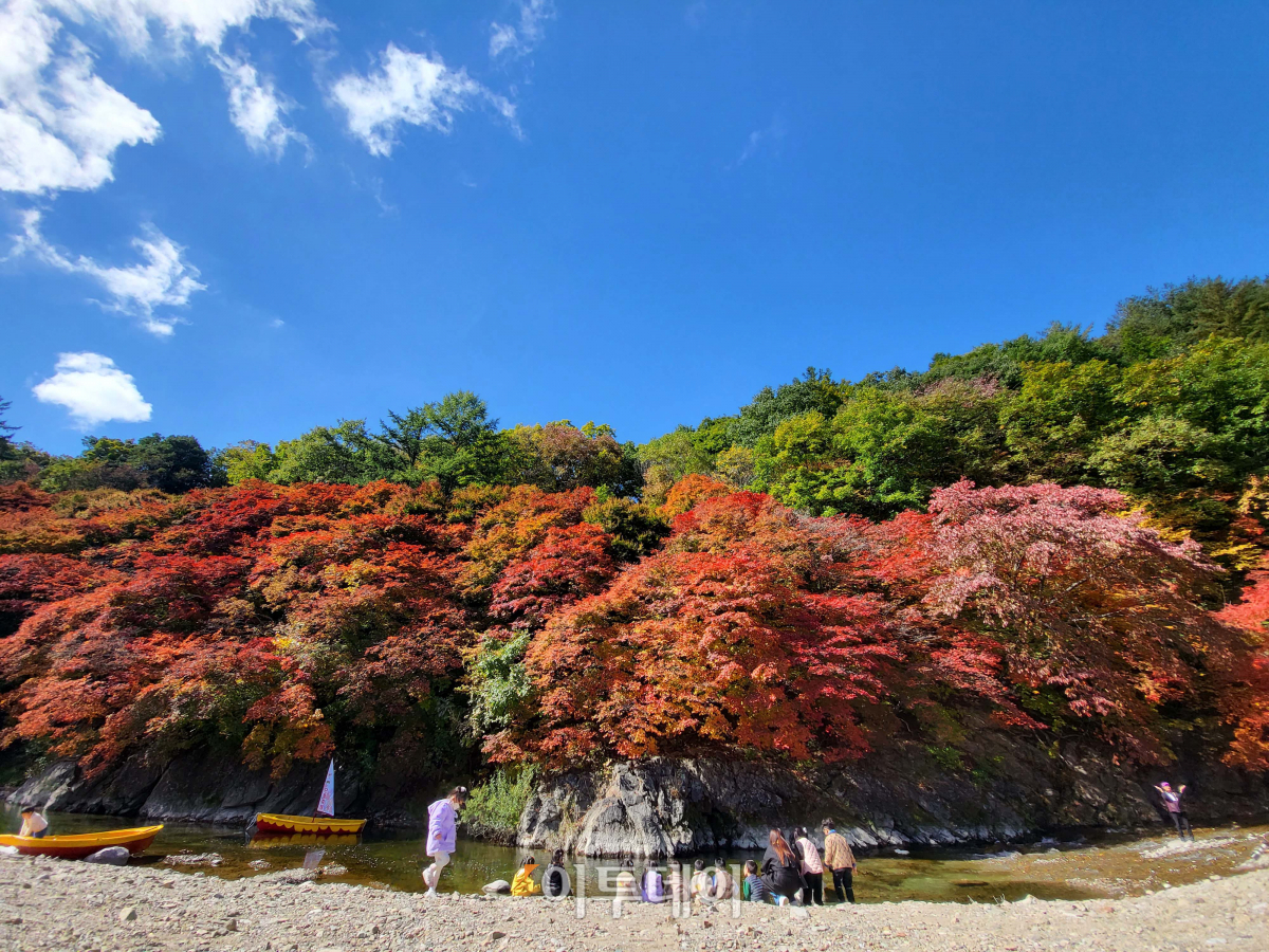 산간지방부터 단풍이 시작되며 가을이 깊어가고 있다. 13일 강원 태백시 철암단풍군락지에 붉게 물든 단풍이 계절의 정취를 전하고 있다.