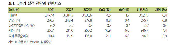 이어 “3분기 5G 가입자 수는 573만 명으로 예상한다”며 “기업 인프라 부문 수주 일부가 다음 분기로 밀리면서 3분기 매출 증가율은 2% 내외로 전망하나 4분기에 증가율을 높이며 성장세를 이어갈 것”이라고 분석했다.