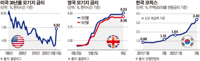 미국 국책 모기지업체 프레디맥이 집계한 30년물 금리는 지난주 6.92%까지 상승해 20년 만에 최고치를 경신했다. 금융정보업체 뱅크레이트나 부동산시장 전문매체 모기지뉴스데일리가 집계한 30년물 금리는 이미 7%를 넘긴 것으로 집계됐다.