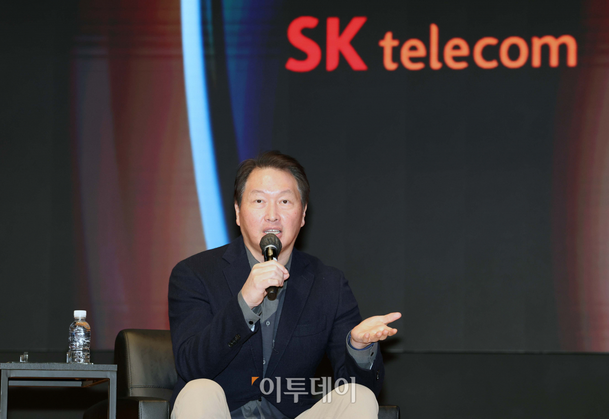 최태원 SK그룹 회장이 3일 서울 강남구 코엑스에서 열린 스파크랩 주최 데모데이에서 ‘미래 기업 가치 창출의 핵심: 고객과의 관계, 스토리, 그리고 신뢰’를 주제로 토크콘서트를 갖고 있다.