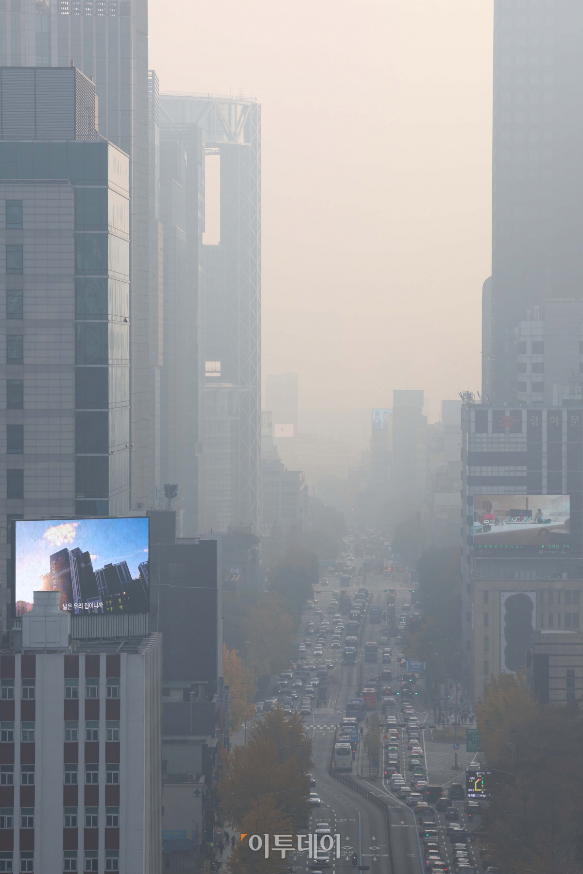 서울시에 9개월여 만에 초미세먼지 주의보가 발령된 10일 서울 종로구 도심 일대가 뿌옇다.