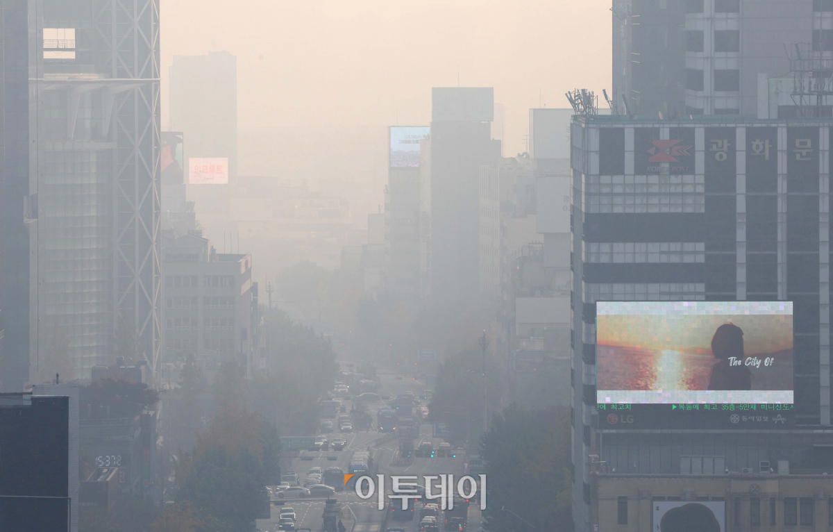 서울시에 9개월여 만에 초미세먼지 주의보가 발령된 10일 서울 종로구 도심 일대가 뿌옇다.