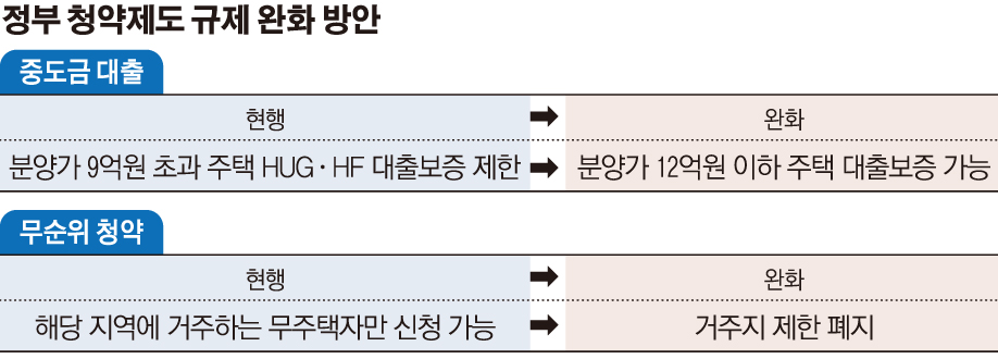정부는 분양시장 과열을 막기 위해 2016년 8월부터 분양가 9억 원 초과 주택에 대해 HUG와 한국주택금융공사(HF)의 중도금 대출보증을 제한해 왔지만, 최근 미분양이 증가하는 등 분양시장이 빠르게 얼어붙으면서 이러한 금융규제를 완화하기로 한 것이다.